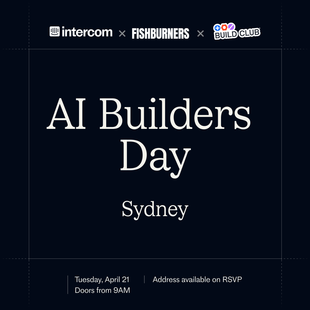 Intercom are bringing AI Builders Day to Sydney β a full day dedicated to founders and engineers building AI products.
