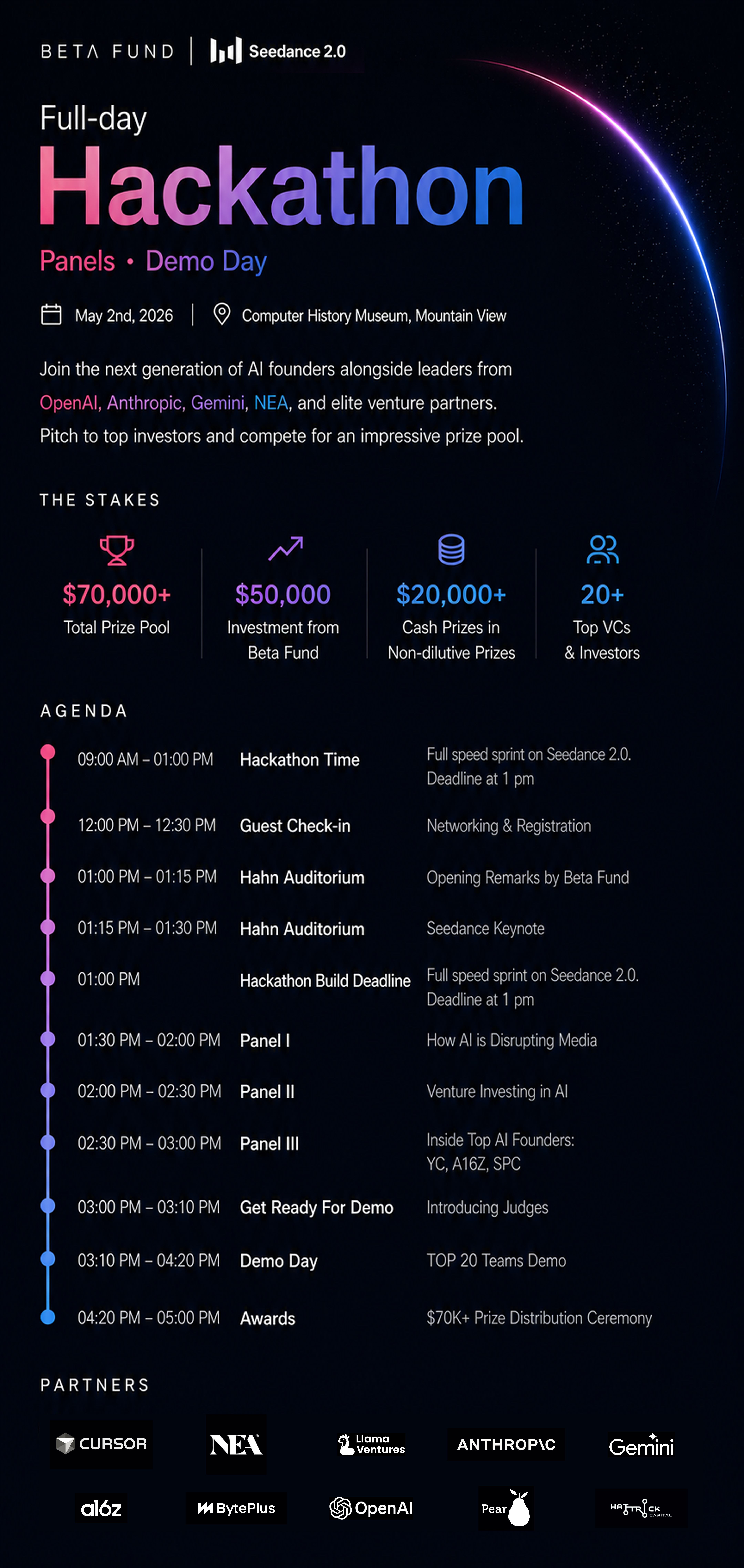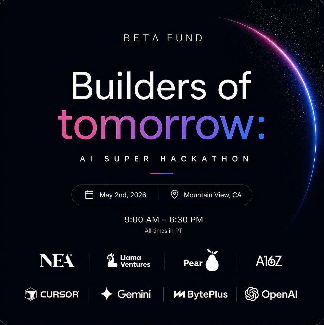 On May 2nd, Beta University brings together the next generation of AI builders, founders, and investors for a full-day experience β where ideas go from concept β product β pitch β capital.
